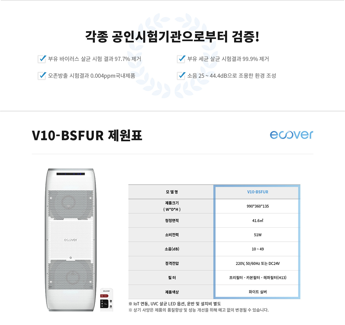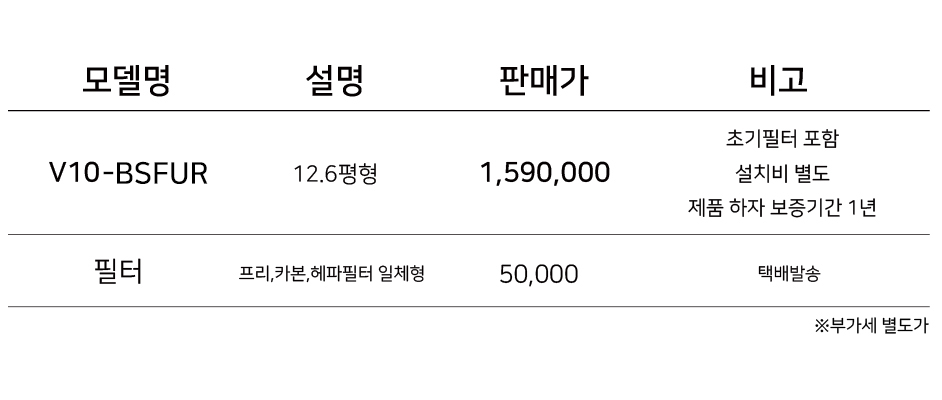 초기 필터가 포함되어 있으며, 별도의 설치비가 발생합니다.