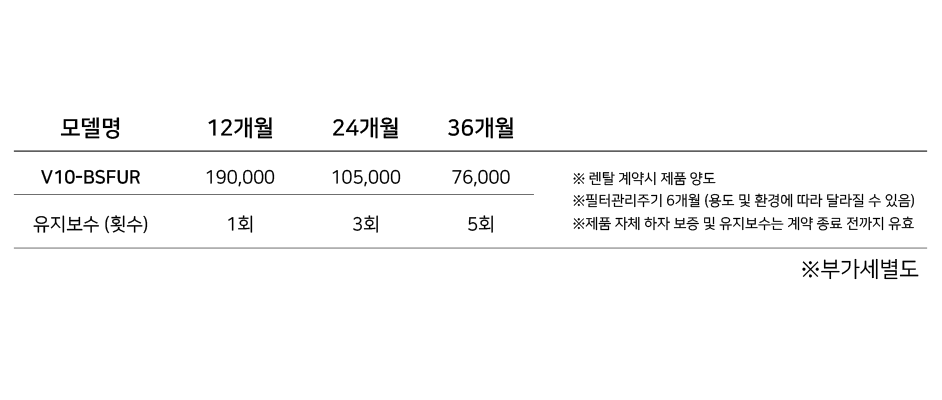 렌탈 계약시 제품이 양도되며, 계약 개월수에 따라 유지보수 횟수가 달라집니다.