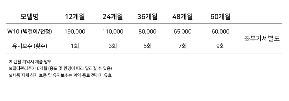 렌탈 계약시 제품이 양도되며, 계약 개월수에 따라 유지보수 횟수가 달라집니다.