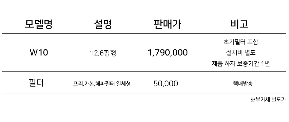 초기 필터가 포함되어 있으며, 별도의 설치비가 발생합니다.